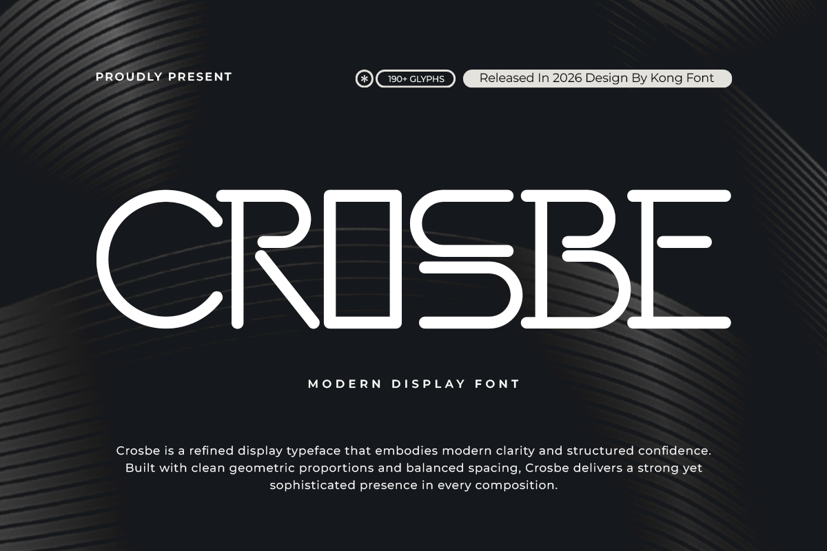Crosbe A Modern Display Font can also be used on small merchandise products from theme-park such as; keychains, refrigerator magnets, and stickers, or you can also print them on items such as t-shirts, jackets, caps, etc. Our collection of Espot & Futuristic fonts is compatible to use as Figma fonts, Canva fonts, Freepik Fonts, and Adobe Fonts]. They also work as Windows Fonts, and Apple Fonts. For your social media needs, you can use and install fonts in our collection of Espot & Futuristic fonts to use as Instagram Fonts, Facebook Fonts, and Twitter Fonts.