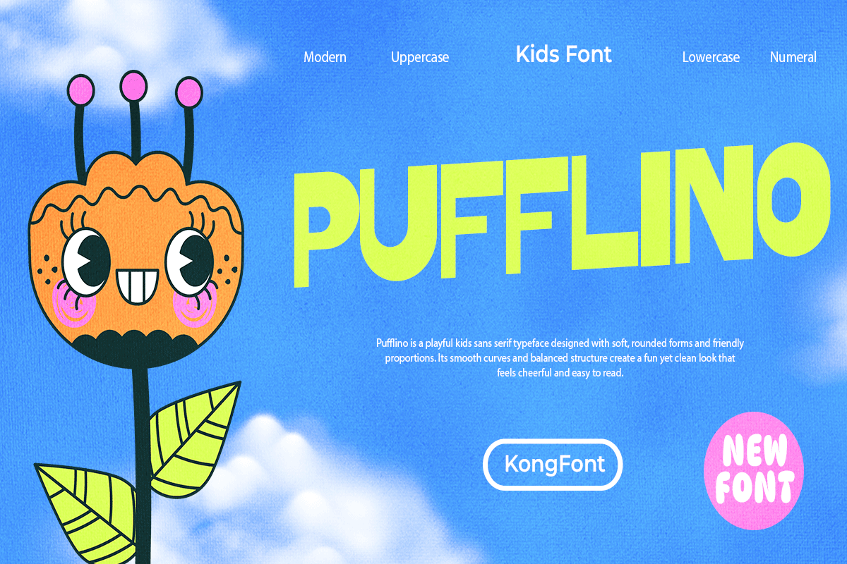 Pufflino A Modern Display Kids Font Part of our Display font collection,